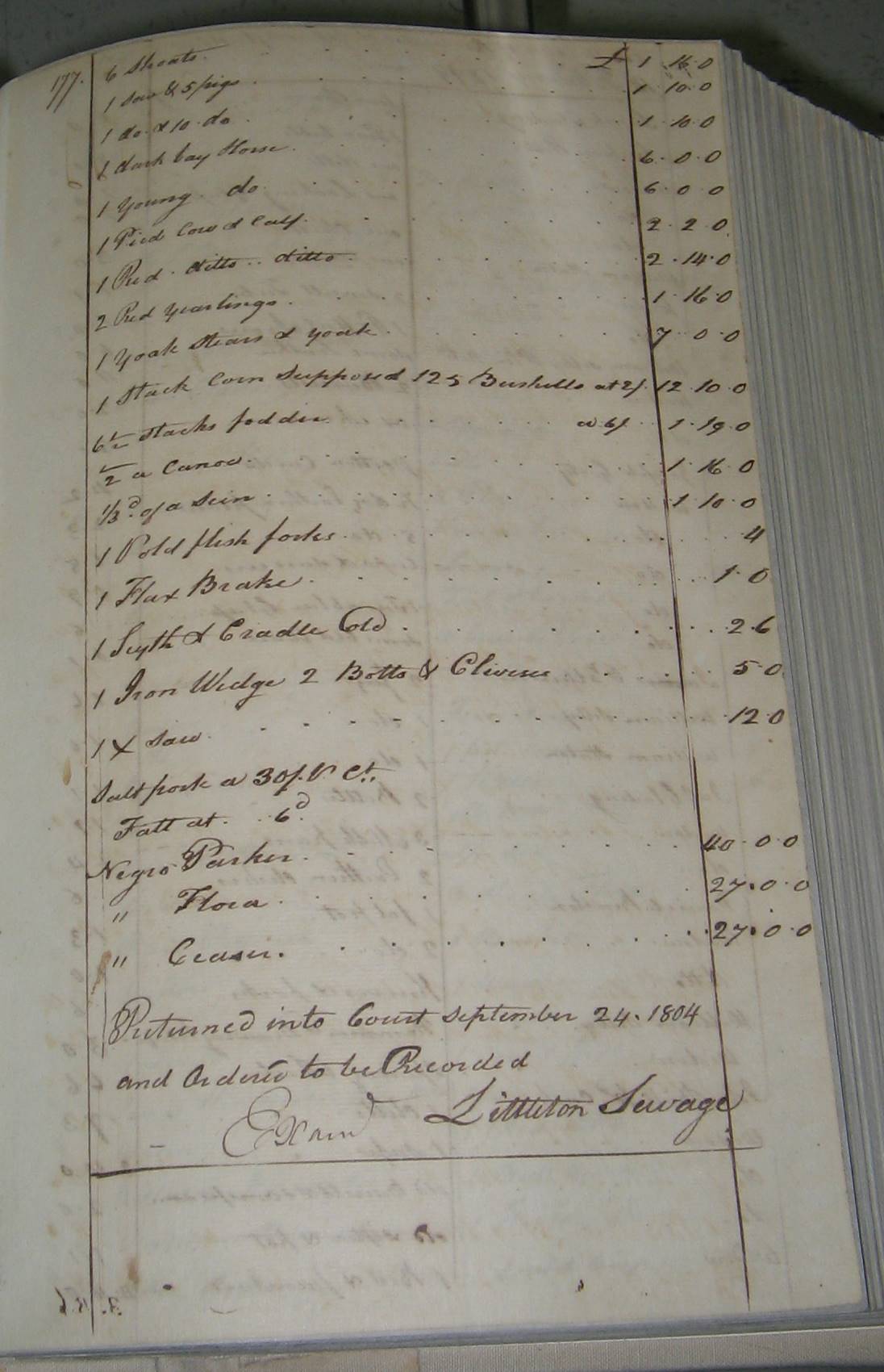 Returned into Court September 24. 1804 and Ordered to be Recorded